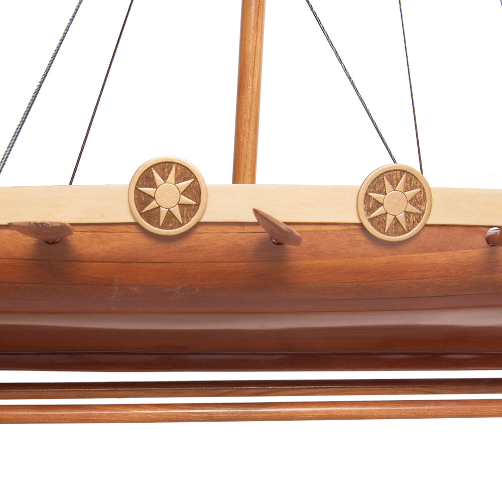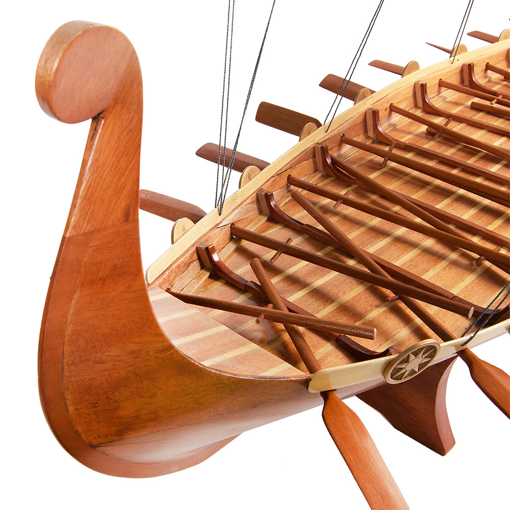 Each Drakka Viking is handcrafted from premium woods such as cedar, mahogany, and teak, using the traditional plank-on-frame method. Every model requires hundreds of hours of meticulous work, ensuring accuracy and authenticity in every plank, rib, and deck fitting.