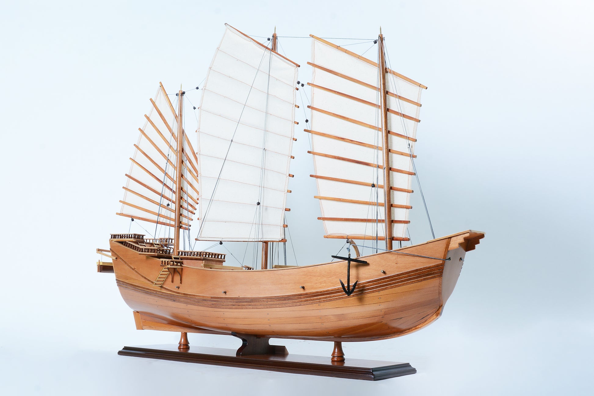 The hull is constructed using the plank-on-frame method with high-quality wood, ensuring durability and an authentic shape. Its distinctive high stern, broad beam, and flat-bottom hull are carefully recreated to mirror the practical design that allowed junks to navigate both open seas and shallow rivers.