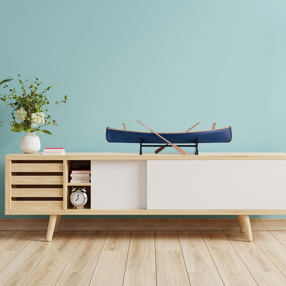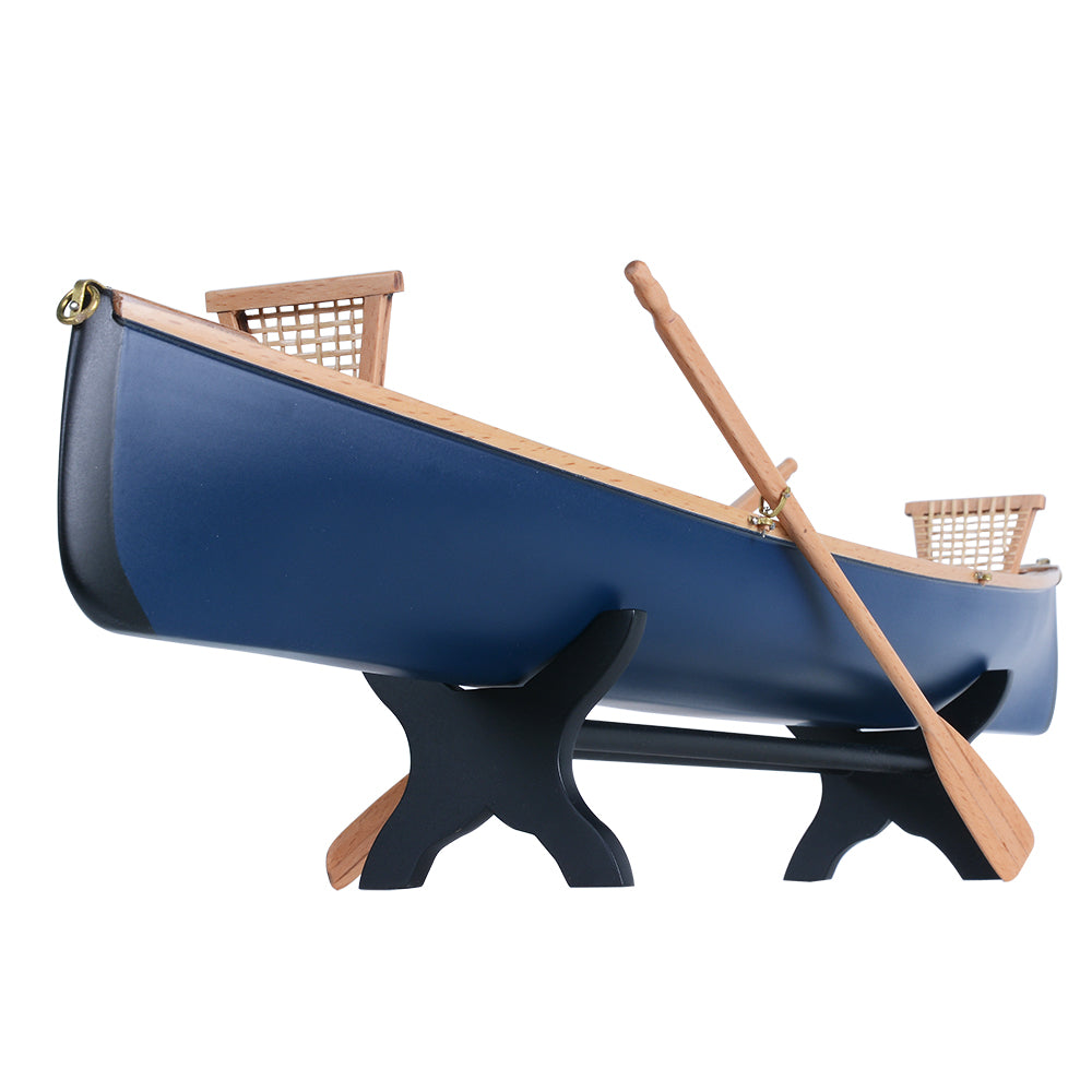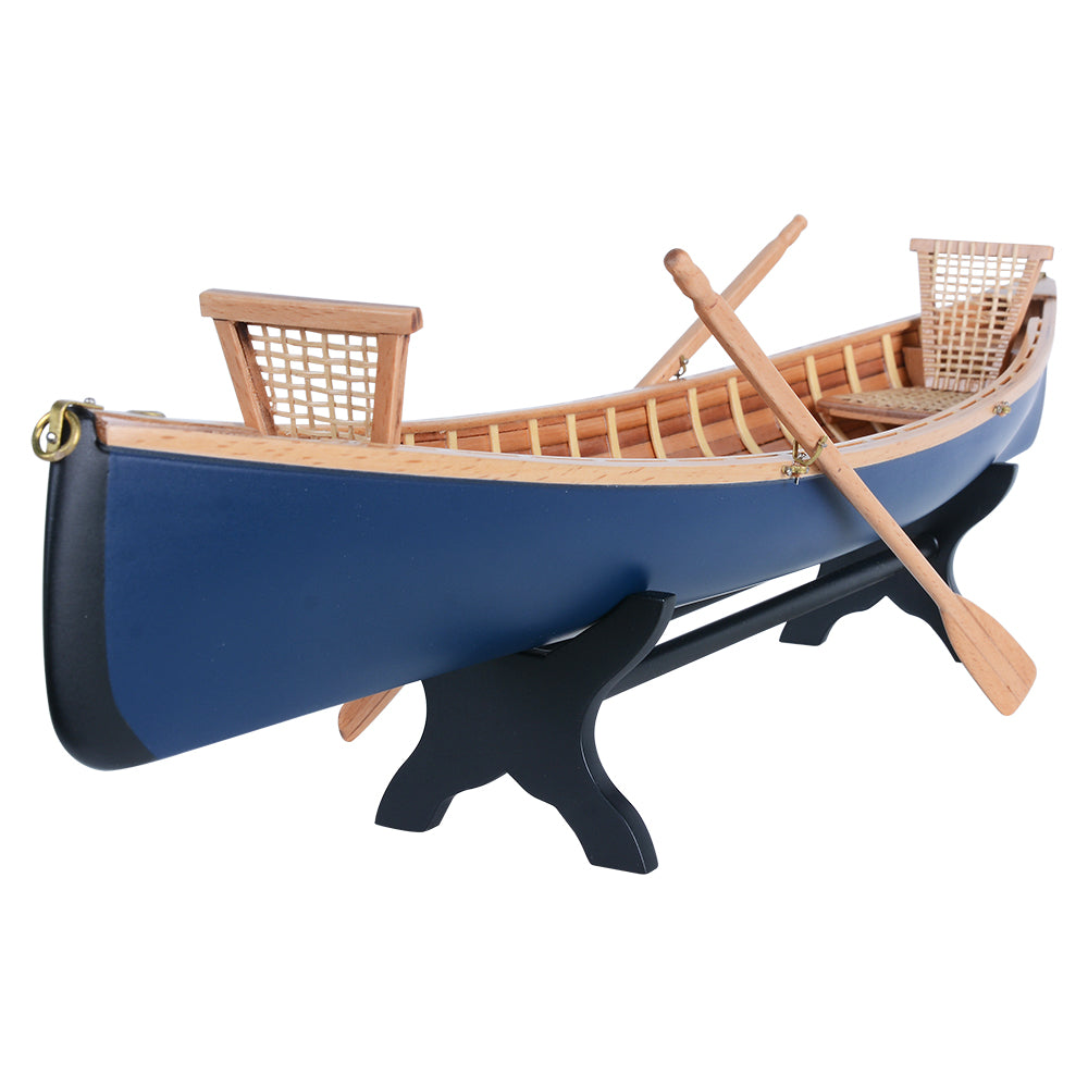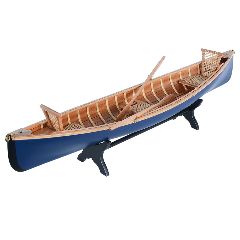 The Adirondack Guideboat 18-inch model is a beautifully crafted tribute to the classic boats of the Adirondack region. Built from premium woods such as Western Red Cedar, teak, and mahogany, the model reflects the lightweight strength and durability that defined the original guideboats.