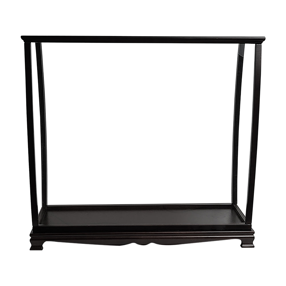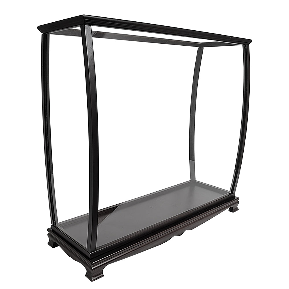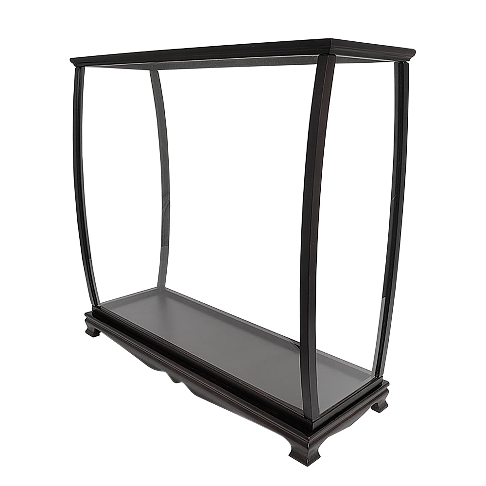 Crafted from hardwood, painted in a dark mahogany color, and fully assembled, this tabletop display case adds elegance to any setting. With plexiglass panels on all sides and curved edges to accommodate wide yards, it effectively protects your model from dust while showcasing its beauty. A must-have for model ship enthusiasts and collectors alike.
