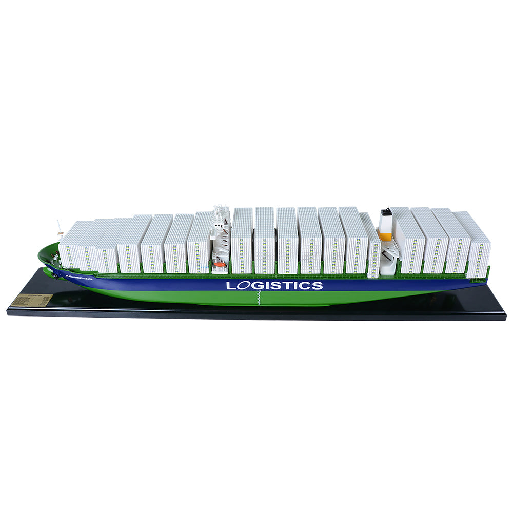 The Logistics Container Ship Model is a finely crafted miniature that captures the power and efficiency of a modern cargo vessel built to move thousands of containers across the world’s oceans. Designed with sleek lines and a contemporary silhouette, the model reflects the scale and precision of today’s global shipping industry. Every container is individually made and carefully arranged, creating a realistic, structured layout that mirrors the immense capacity of full-size container ships.