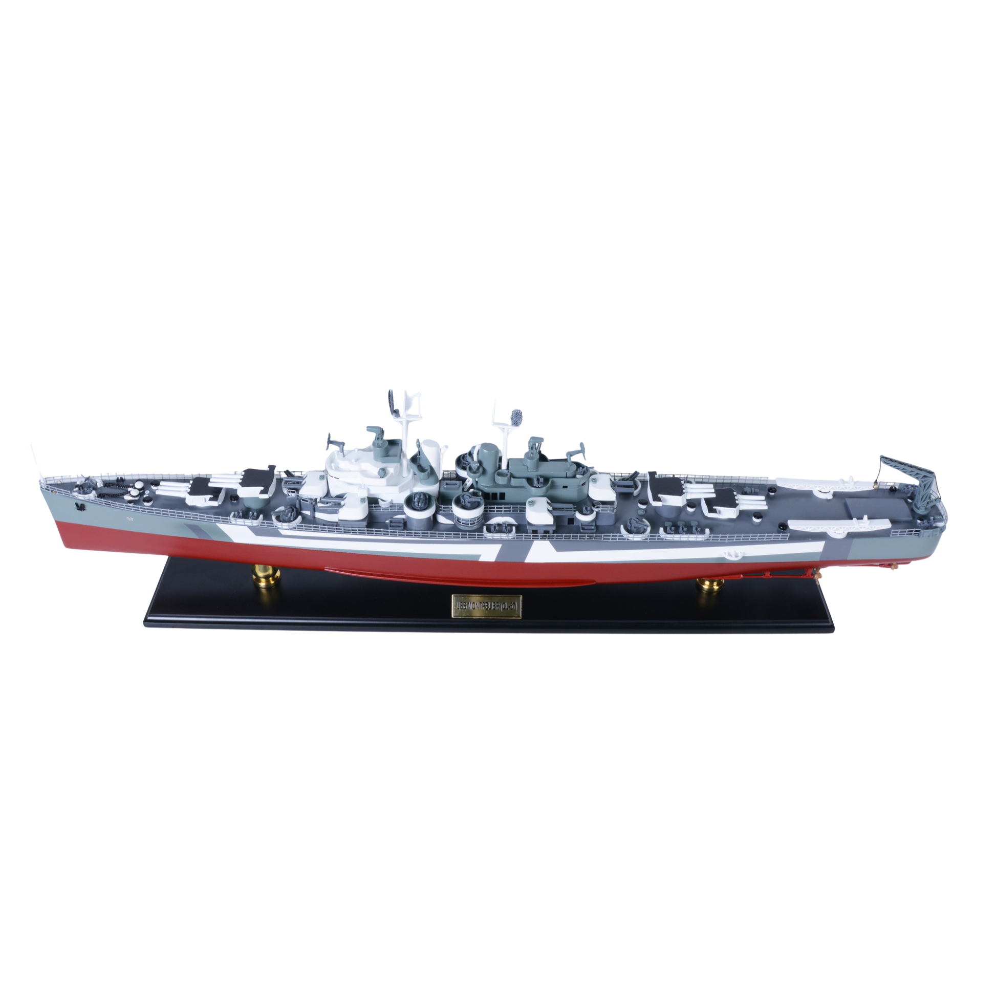 The Cleveland-class Cruiser model from Old Modern Handicrafts is a custom-made, museum-quality ship model, crafted with the utmost precision by our expert artisans. Using imported Canadian red cedar and FSC-certified wood, we ensure sustainability and quality in every model. With 25 years of experience, we handcraft each model ship to perfection, taking 3-6 months to build. We offer a 31-day return policy, and our team will continue refining your model until it meets your highest expectations. This warship model is a perfect tribute to World War 2 history and is designed to make an unforgettable addition to your collection. Celebrate Veteran's Day with a timeless wooden ship model that captures the spirit of naval history.
