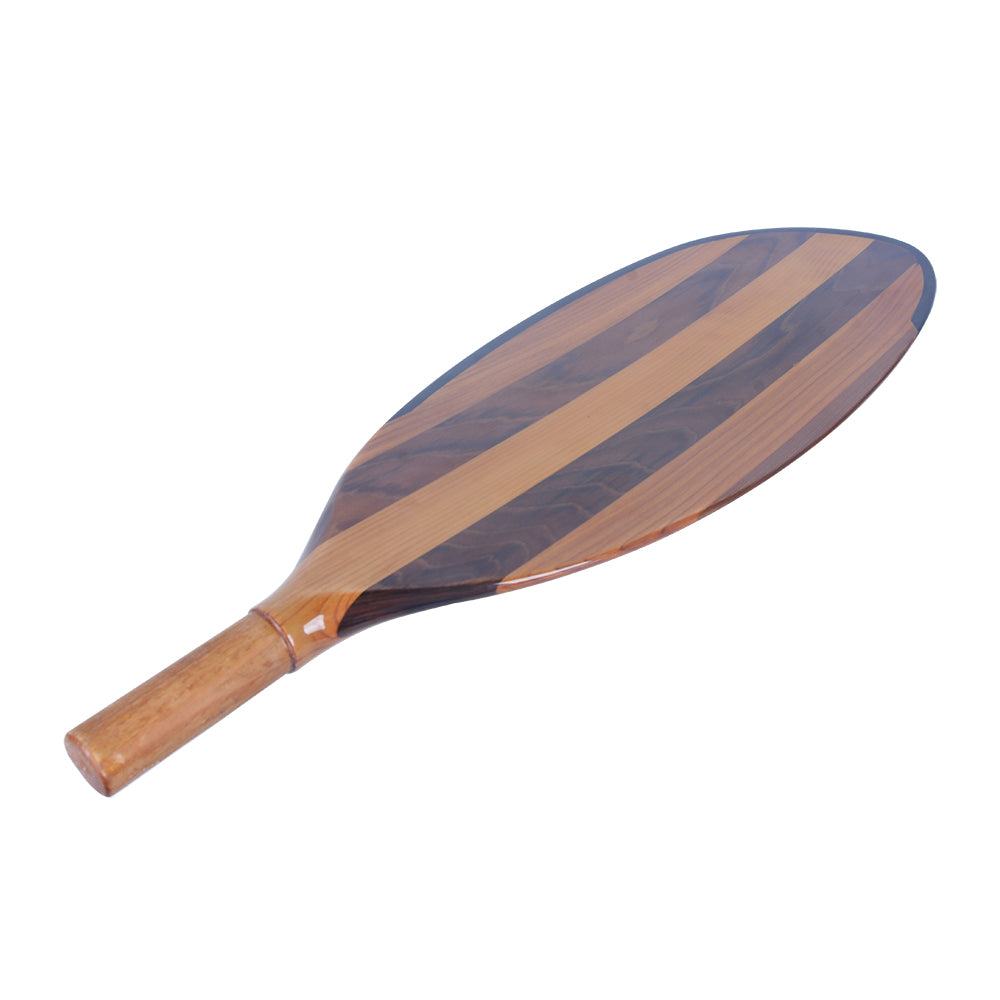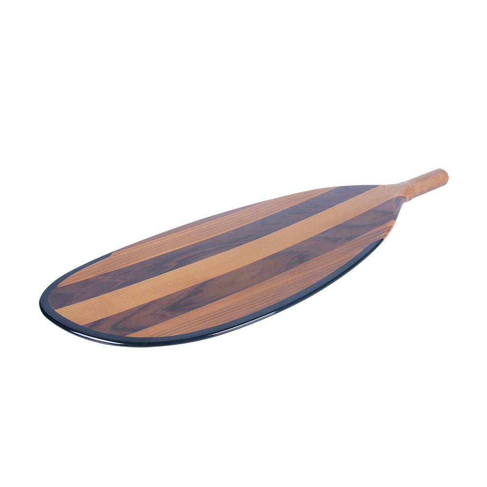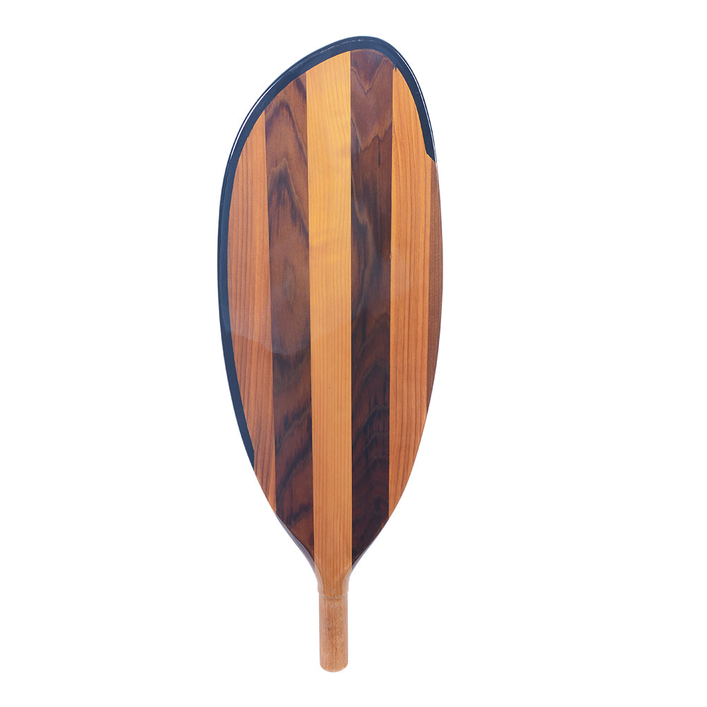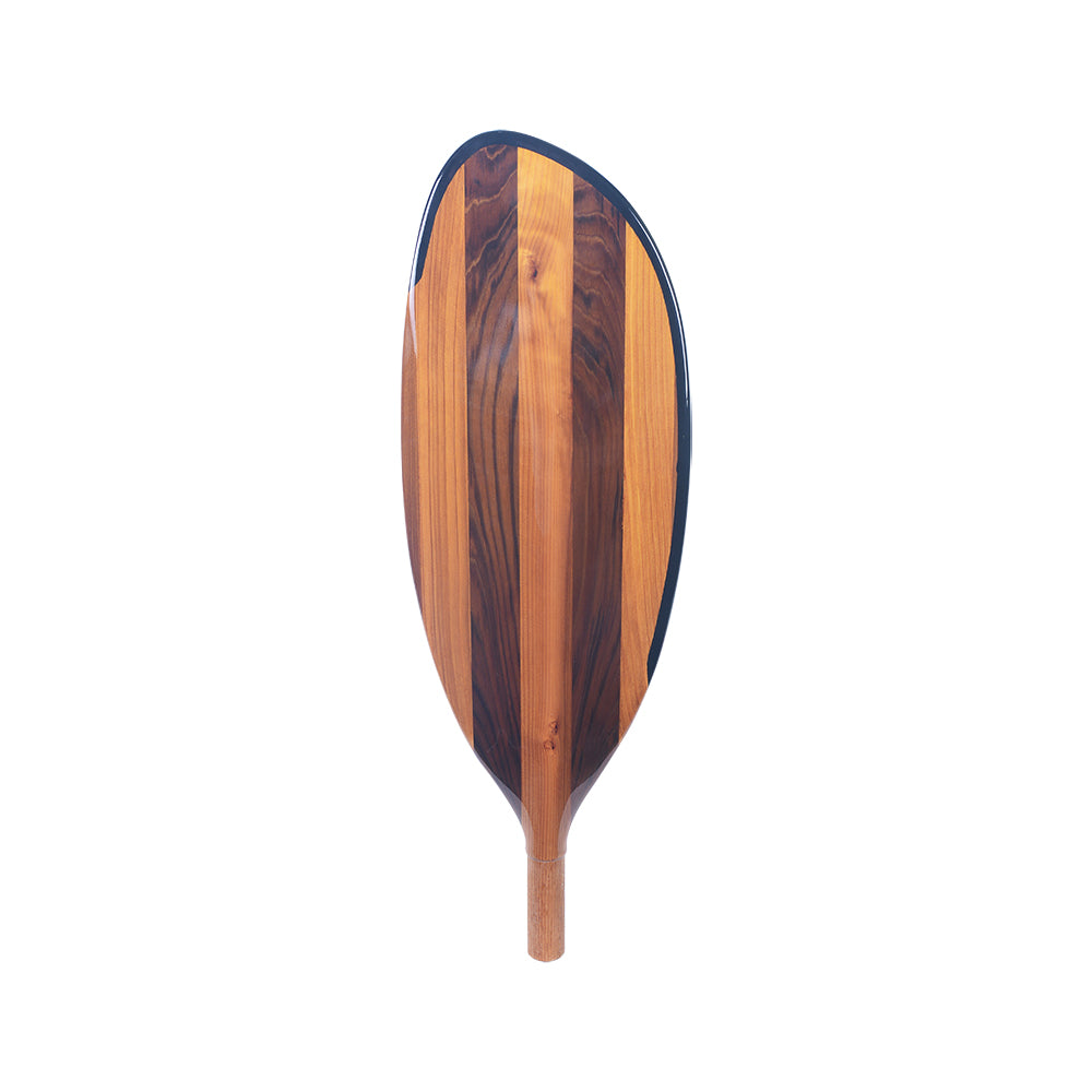 This handcrafted paddle blade is made from premium Canadian red cedar, known for its strength, lightweight feel, and beautiful natural grain. Measuring 56L x 17W x 3H cm, it is expertly shaped and polished to create a smooth, elegant surface. The alternating wood tones shown in the image highlight the paddle’s rich color contrast and craftsmanship, giving it a refined and luxurious look.