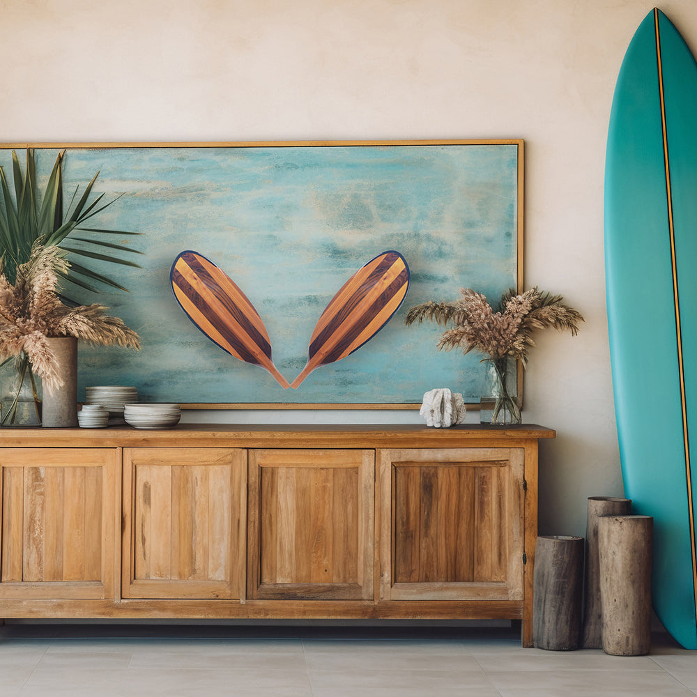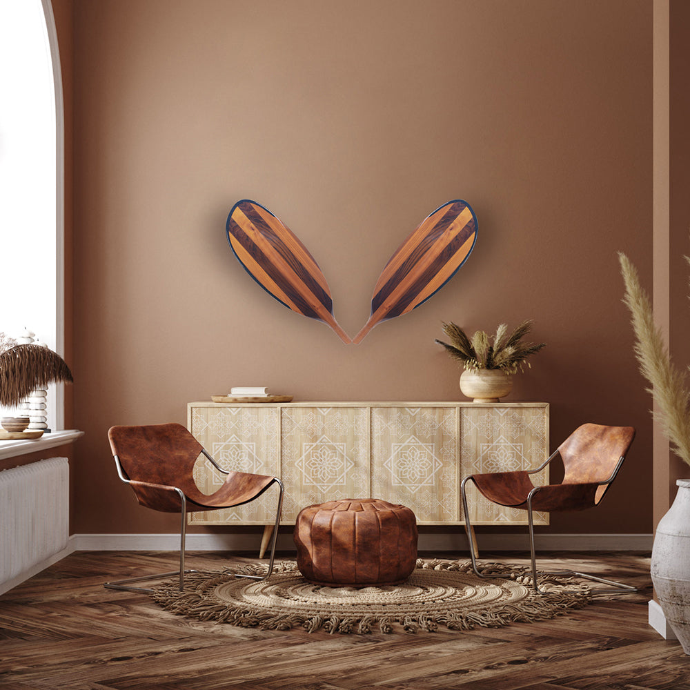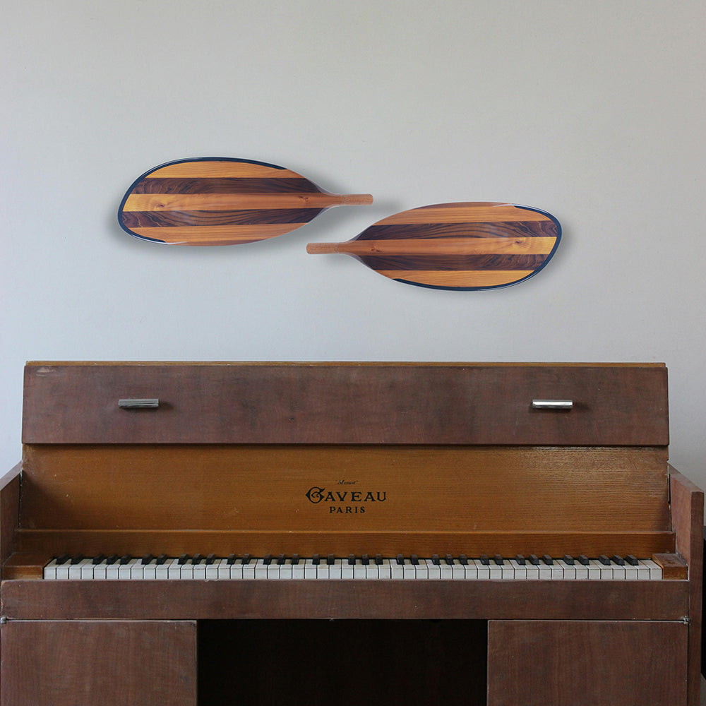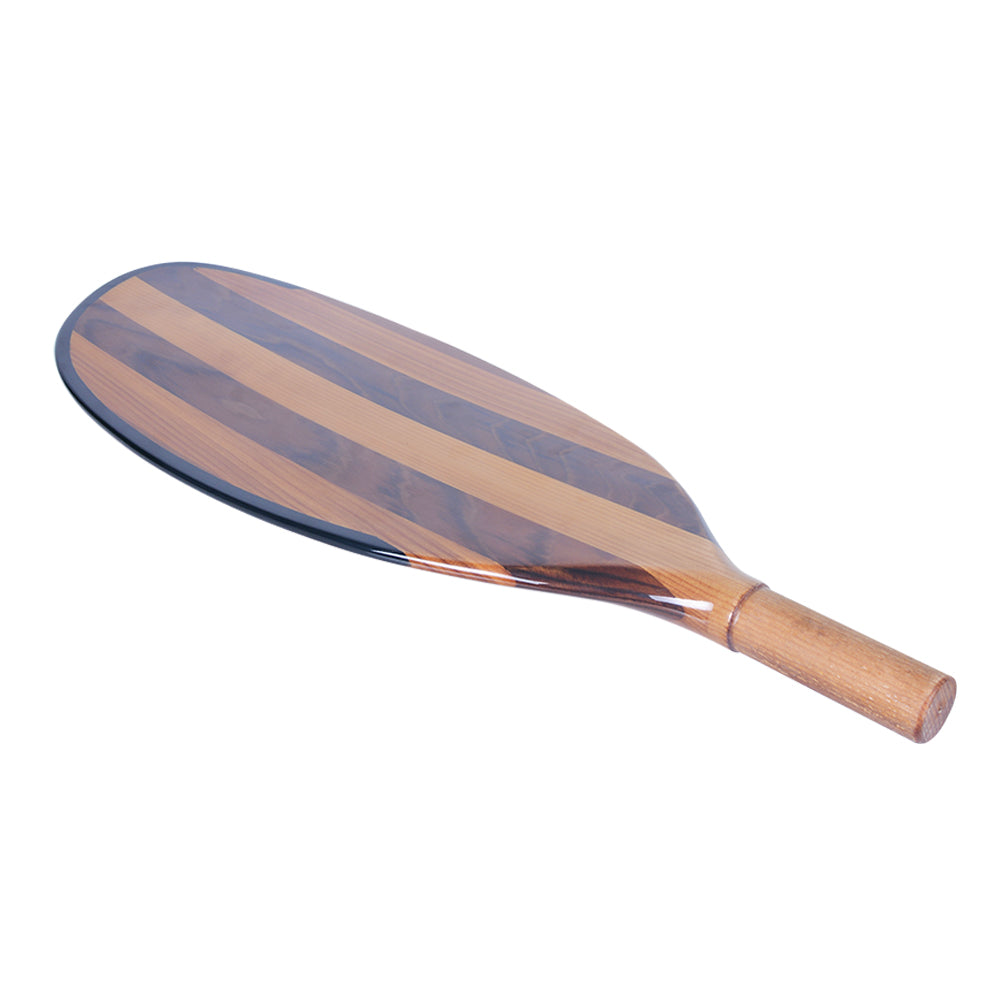 This handcrafted paddle blade is made from premium Canadian red cedar, known for its strength, lightweight feel, and beautiful natural grain. Measuring 56L x 17W x 3H cm, it is expertly shaped and polished to create a smooth, elegant surface. The alternating wood tones shown in the image highlight the paddle’s rich color contrast and craftsmanship, giving it a refined and luxurious look.