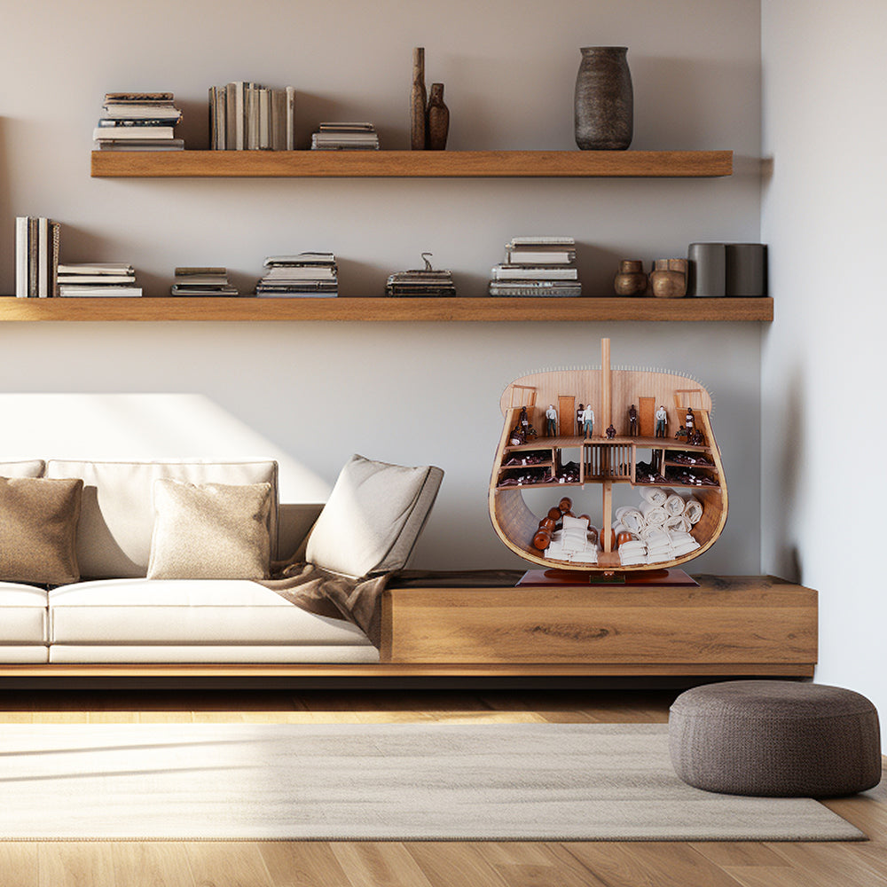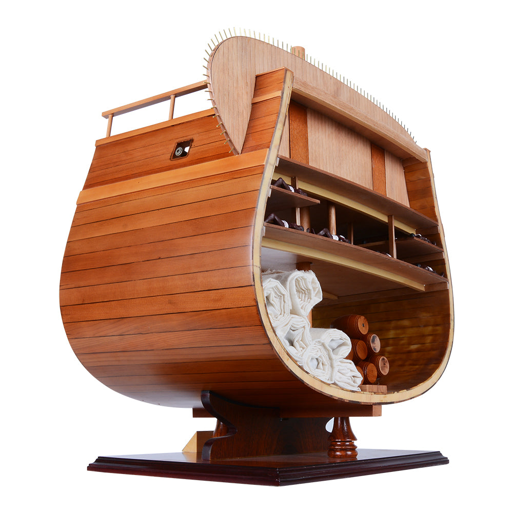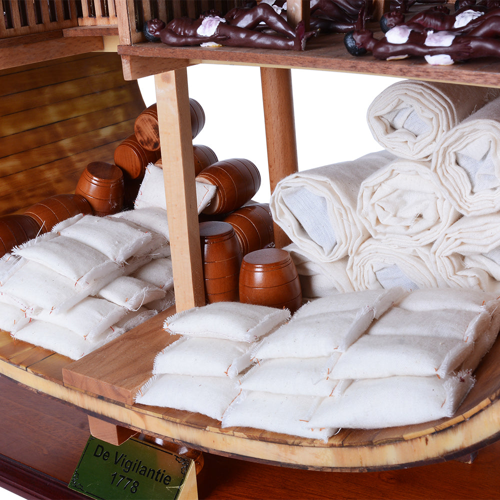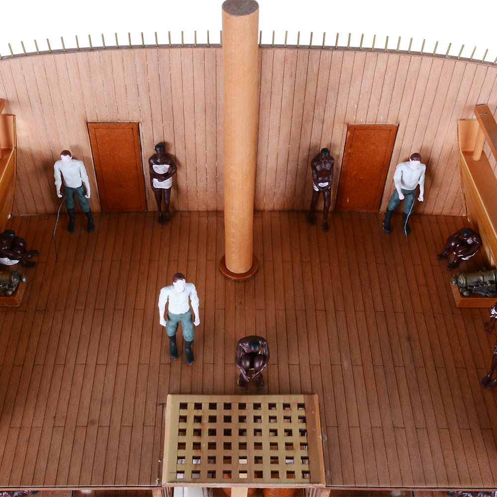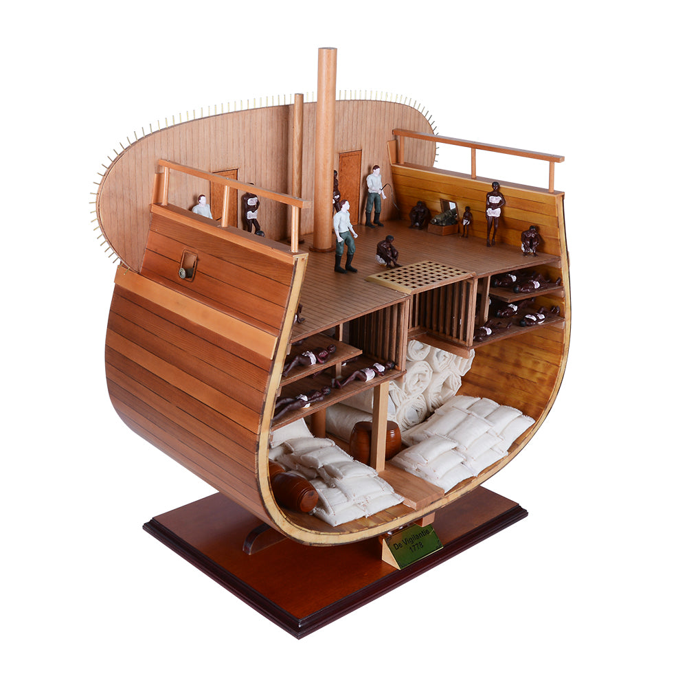 This detailed cross-section model of a Dutch slave ship offers a powerful and educational look into the cramped, brutal conditions endured by enslaved people during the transatlantic slave trade. Expertly crafted, the model reveals the internal structure of the vessel, illustrating both the human suffering it carried and the commercial goods transported alongside them.