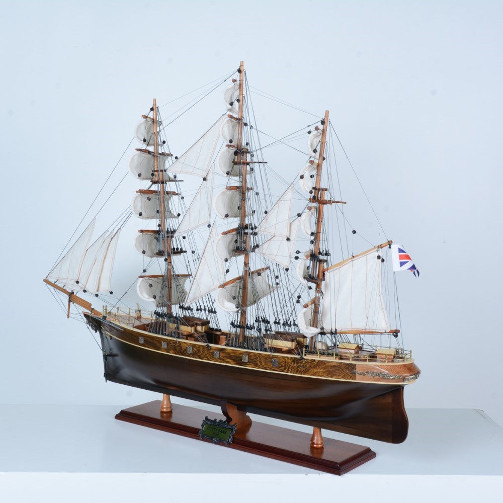 Bring home a piece of maritime history with a fully assembled model of the Cutty Sark, the last surviving original clipper ship of the 1800s, designed by the famed Hercules Linton and launched in 1869 in Dumbarton, Scotland.