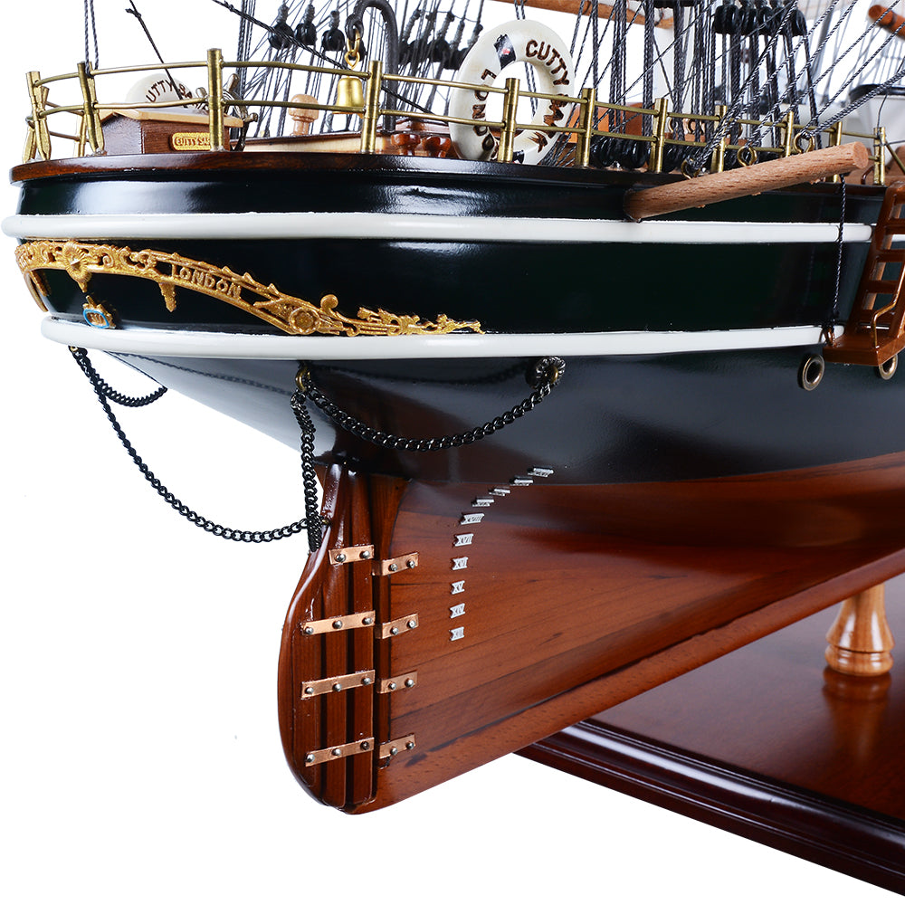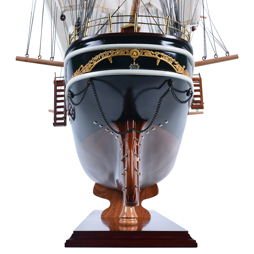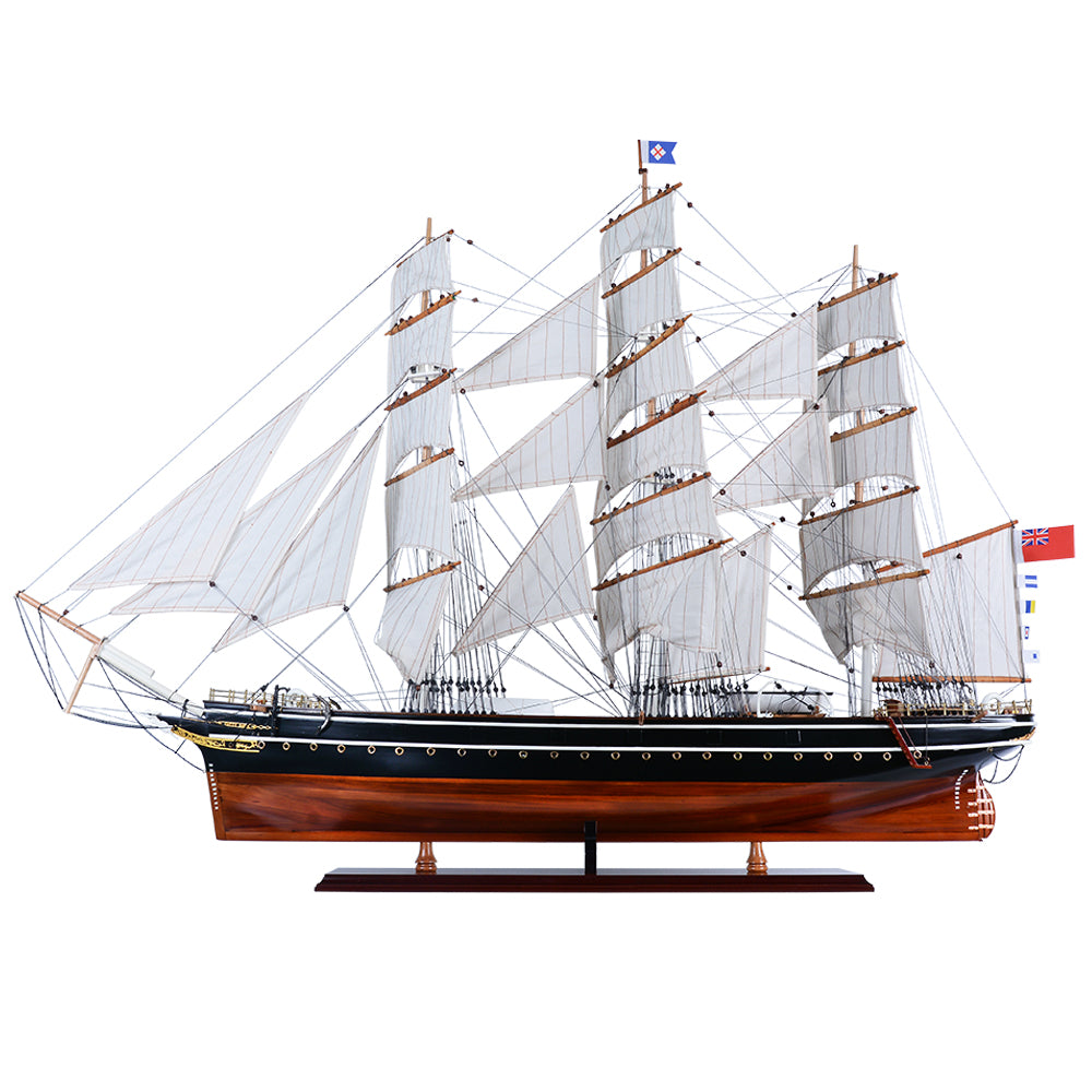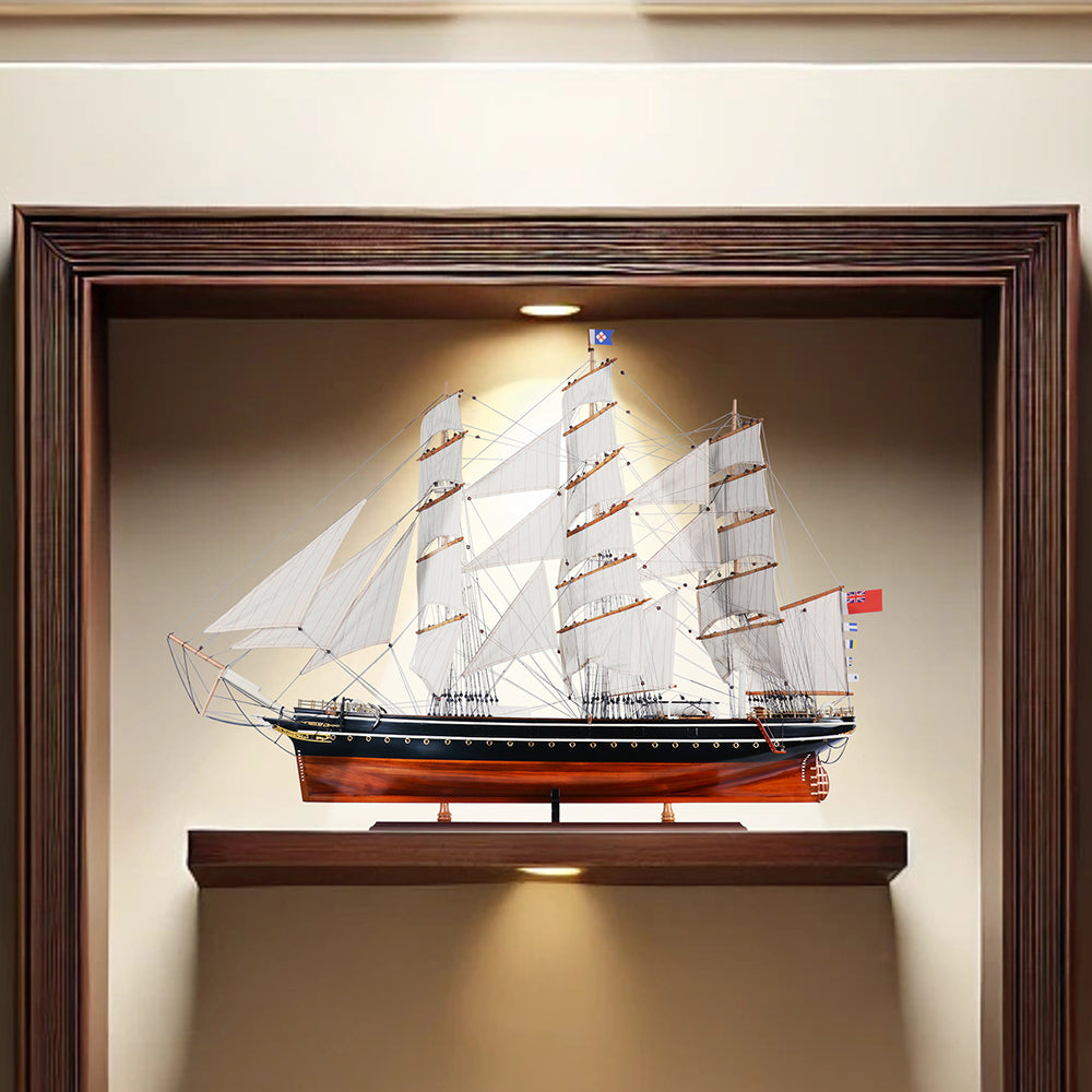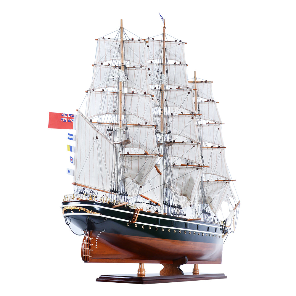 This Cutty Sark Limited Edition model is a museum-quality masterpiece, meticulously handcrafted to reflect the ship’s beauty and engineering with exceptional precision. Built using the traditional plank-on-frame method, the hull combines rich tones of Western Red Cedar, mahogany, and teak, each plank hand-shaped and sanded to achieve a flawlessly smooth, natural finish.